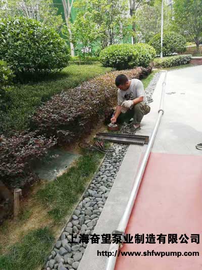 P S:深井潛水泵位置位于售樓部后邊綠化處的地下設(shè)備間,地下設(shè)備間空間比較小,再加上環(huán)境周圍樹木花草較多,對(duì)下井管帶來(lái)不小的難度。